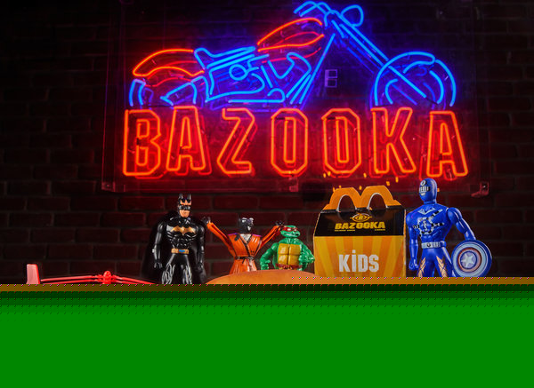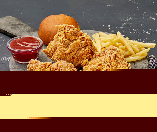Kids MealBurger sandwich. 1 chicken piece, 2 chicken strips pieces or strips sandwich, fries, juice, toy |