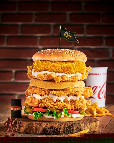 Double sandwiches contain 2 chicken pieces, triple size contains 3 chicken pieces