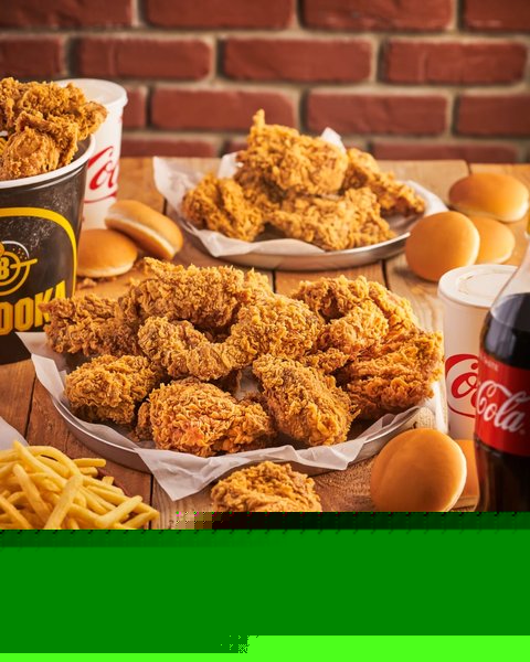 Chicken pieces, family fries, large coleslaw, liter coca-cola, bread