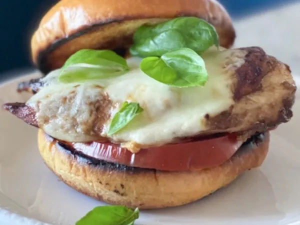 Grilled vegetables, onions, basil, tomato sauce and mozzarella cheese