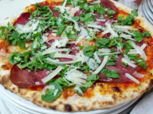 Bresaola beef, mozzarella cheese, cherry tomato, rucola, basil and tomato sauce