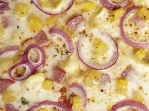 Fresh Onion, mozzarella cheese, tomato sauce, basil, cherry tomato