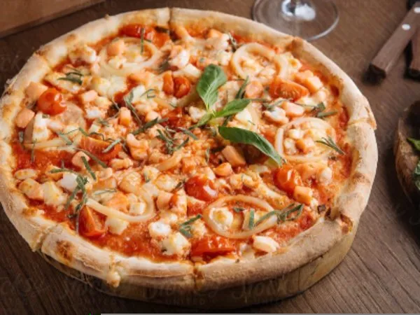 Shrimp, calamari, capers, basil, tomato sauce and mozzarella cheese