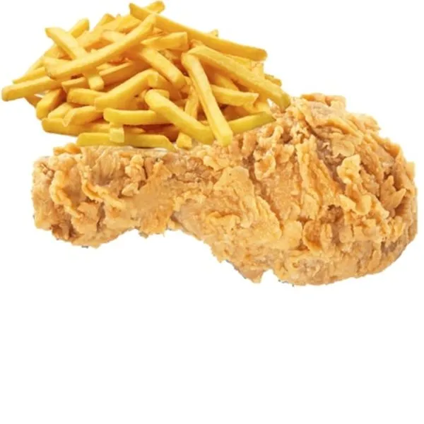 2 chicken pieces served with fries, bread and ketchup