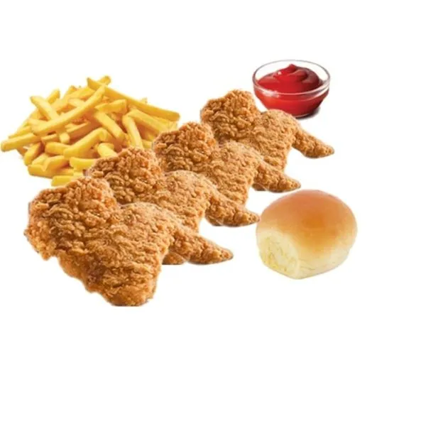4 wings pieces served with fries, bread and ketchup