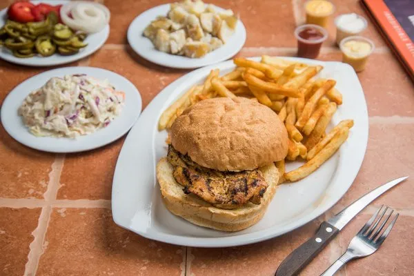 Grilled charcoal chicken served with your favorite sauce and items from the salad bar