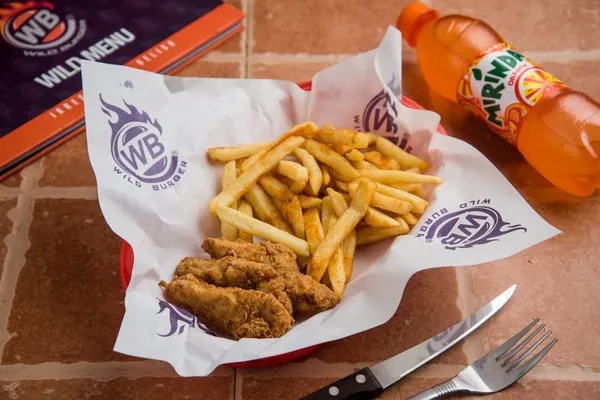 Double Wild chicken tenders served with emmental cheese, beef strips and sauteed mushroom