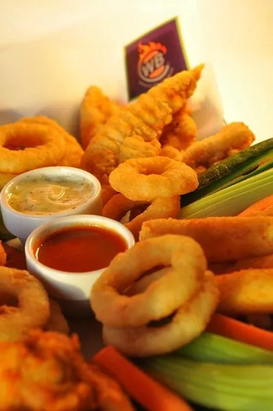Buffalo chicken wings, Wild chicken tender, fried cheese sticks, chili cheese fries and onion rings served with Wild dip sauce