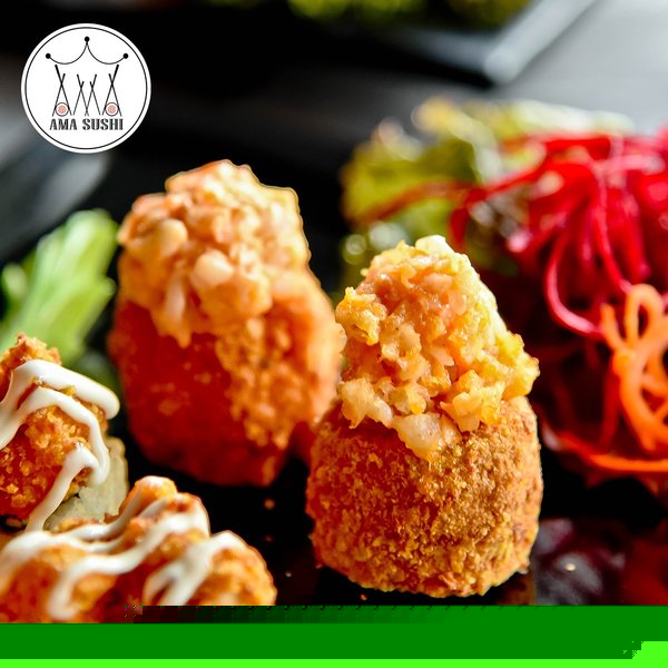 Deep fried roll with a tasty cream cheese wrapped in sushi rice and seaweed