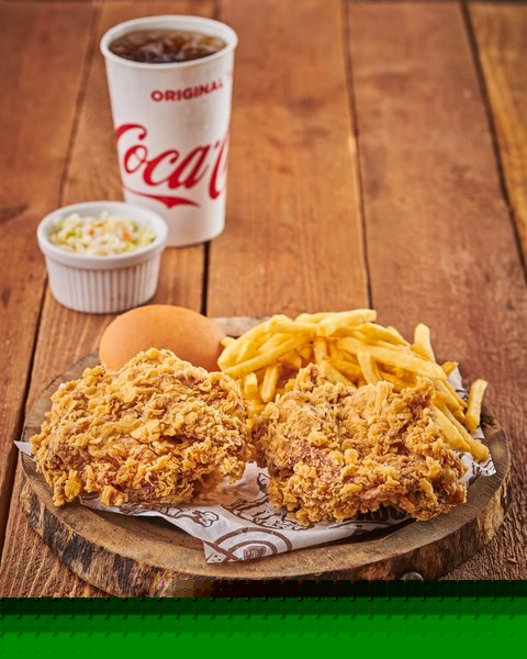 Chicken pieces, family fries, large coleslaw, liter coca-cola, bread