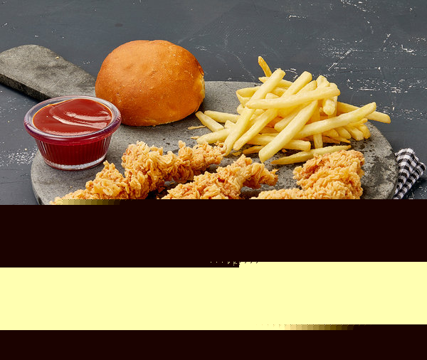 Kids MealBurger sandwich. 1 chicken piece, 2 chicken strips pieces or strips sandwich, fries, juice, toy |