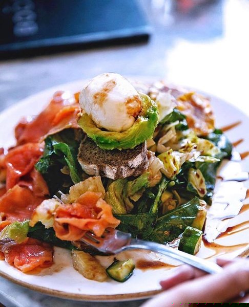 Mixed greens, fresh baby mozzarella, premium smoked salmon, avocado, grapefruit, fresh dill and grilled corn on the cob topped with balsamic dressing