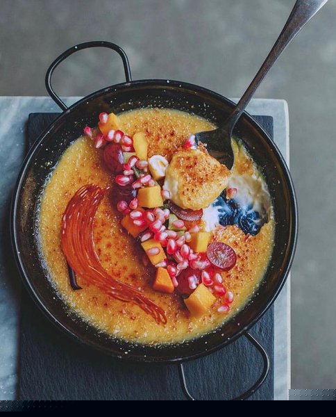Fresh burrata cheese, oven dried baby plum tomato with chopped herbs, pesto oil and balsamic cream