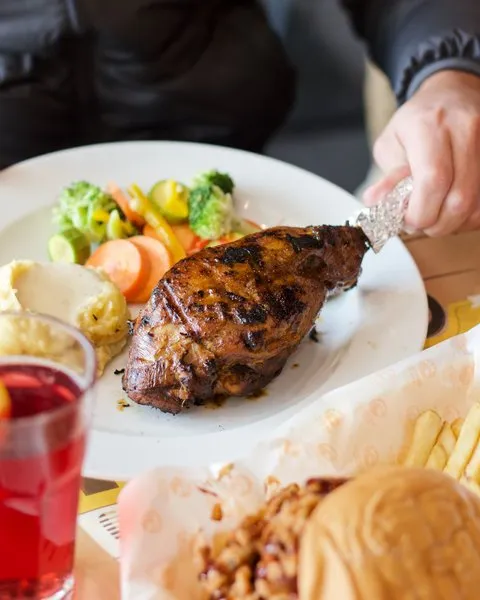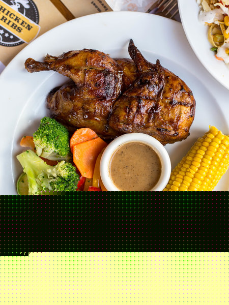Flame grilled chicken breasts, brushed with tangy BBQ sauce, served with 2 sides