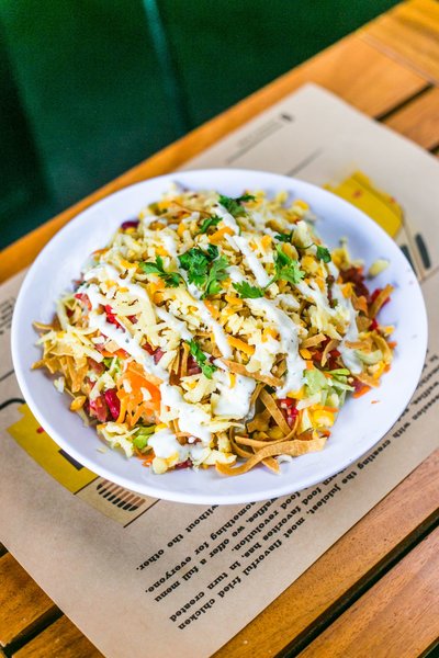 Lettuce, crispy tortilla strips, bacon, mixed cheddar cheese, red beans & sweet corn, with house made ranch dressing