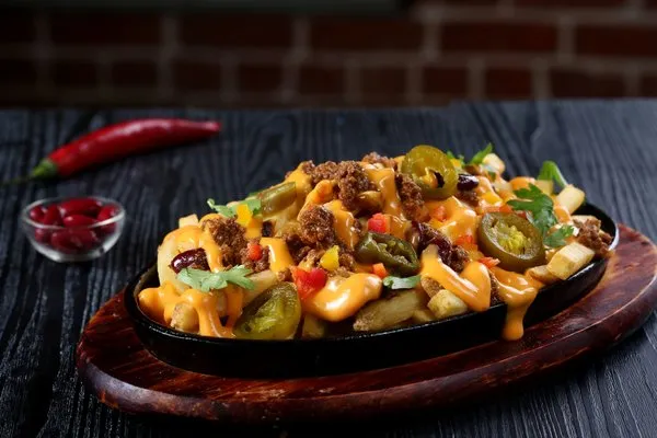 Fries, cheese, chili beef, gravy & jalapenos