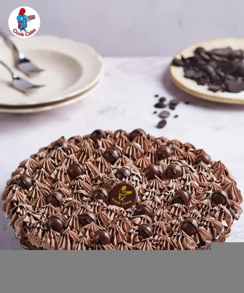 Dark chocolate cake with chocolate and vanilla ice cream topped with chocolate sauce