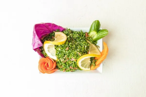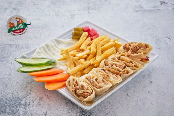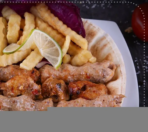Served with onion, grilled tomato, fries, mouhamara and salad