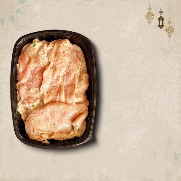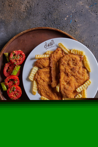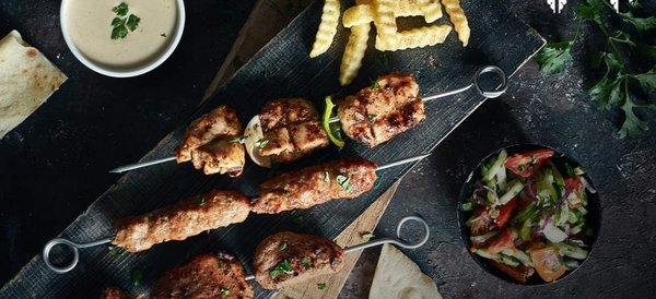 1/8 kofta, 1/8 shish tawook and 1/8 kebab. Served with French fries and salad