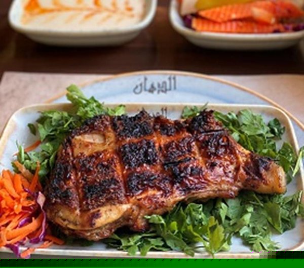 1/4 kofta, grilled pigeon with basmati rice, green salad and bread