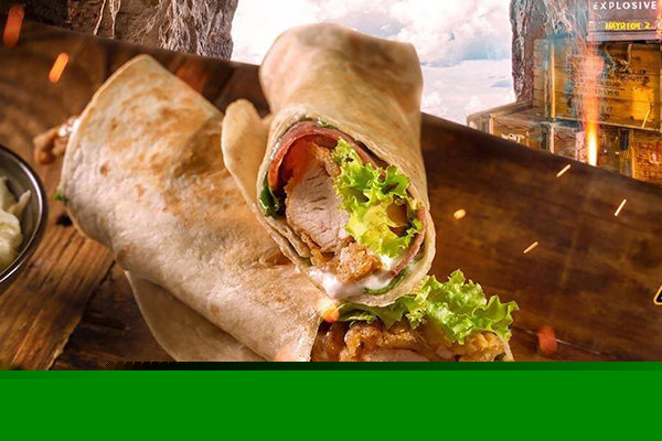 Tortilla bread, chicken strips, mayonnaise, lettuce, jalapeno and hung sauce