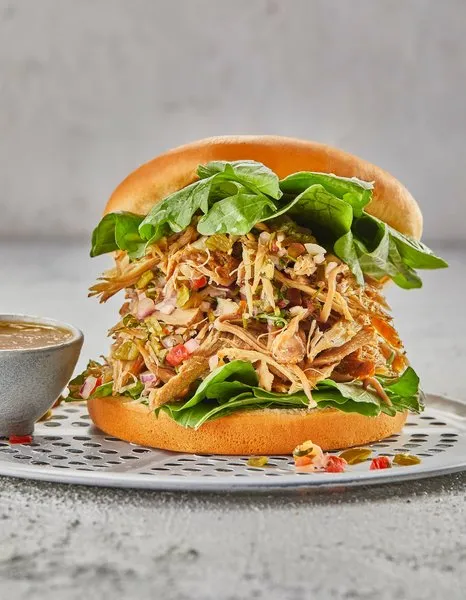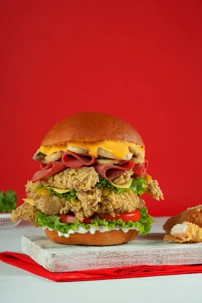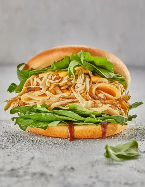 Capitol Sandwich2 original crispy fried chicken pieces, lettuce, tomato, pickled cucumber, mayonnaise, smoked beef, cheese sauce and ranch sauce |