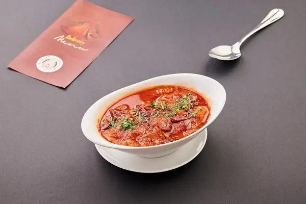 Lamb meat cooked with curry sauce, spices, kashmiri style