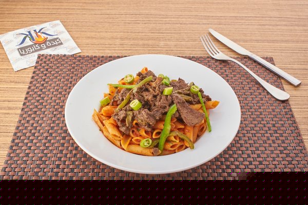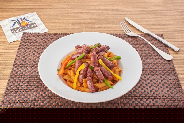 Alexandrian sojouk pieces, green pepper, onion, tomatoes