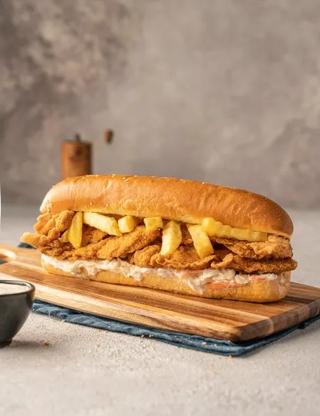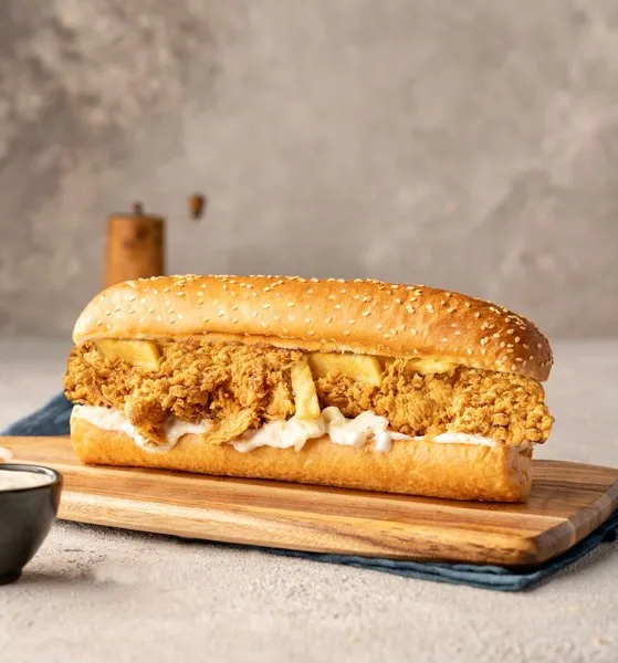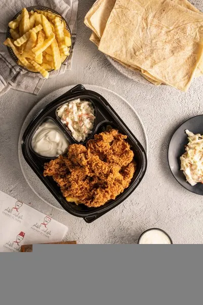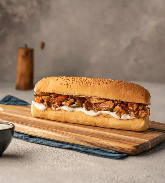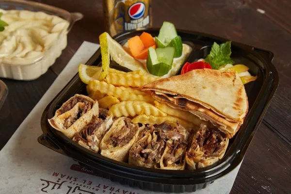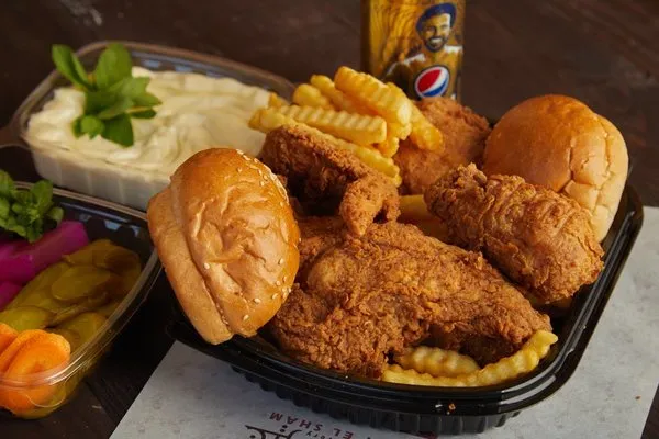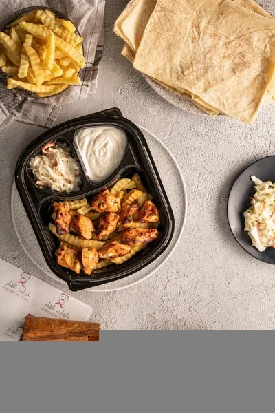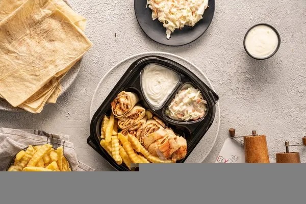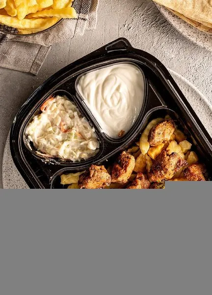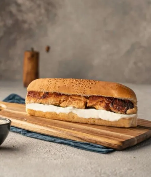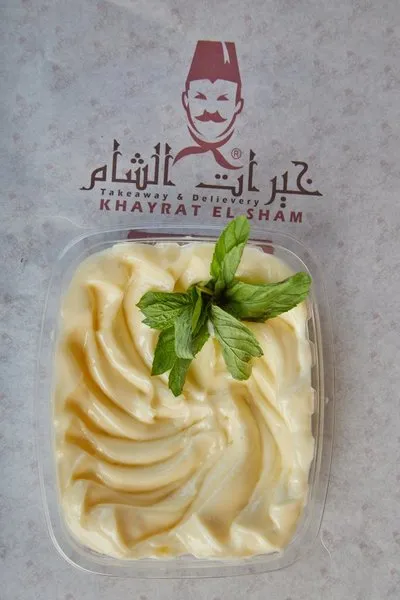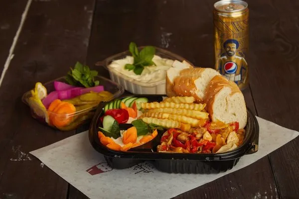 Served small garlic dip and small pickles box with every 3 sandwiches