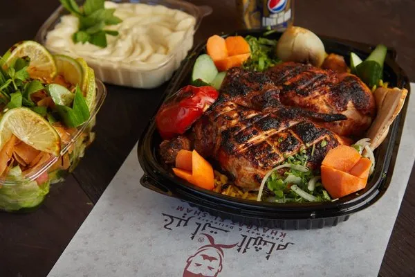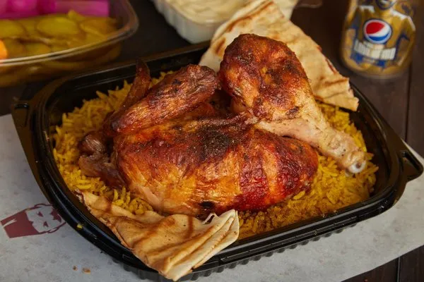 Served with tahina, garlic dip or crashed hummus + onion, pasrley +pickles