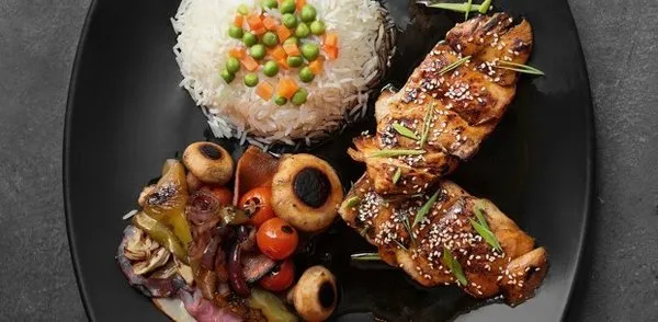 Served with sauteed vegetables and rice
