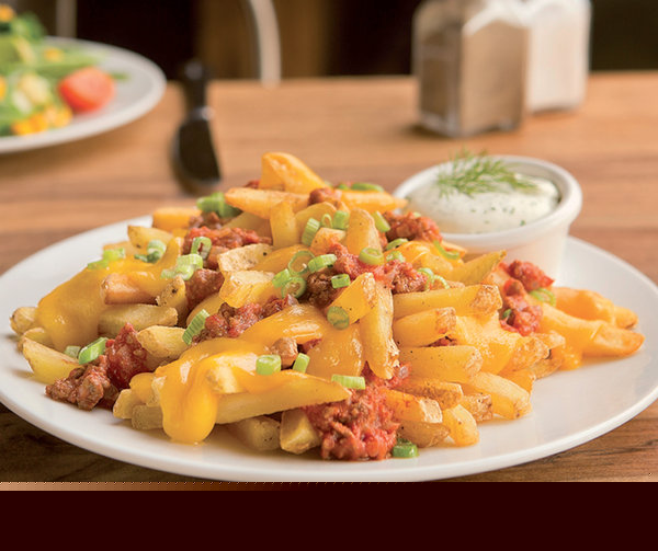 Grass fed patty generously drizzled with red cheddar sauce & cheetos bites
