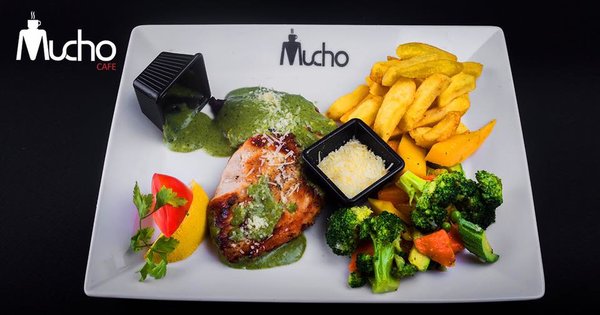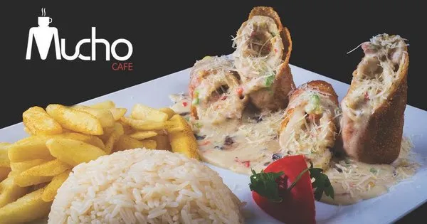 Fried chicken breast stuffed with smoked meats and mix cheese, served with red cheddar cheese, mayonnaise and fresh vegetables