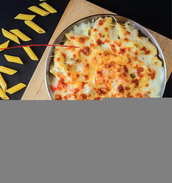 Fusilli pasta, salami, beef bacon, smoked turkey, hot dog, cheddar, olives, mixed pepper and thousand island dressing