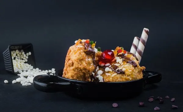 Fried mozzarella sticks with a doritos crispy crust served with sweet chili sauce
