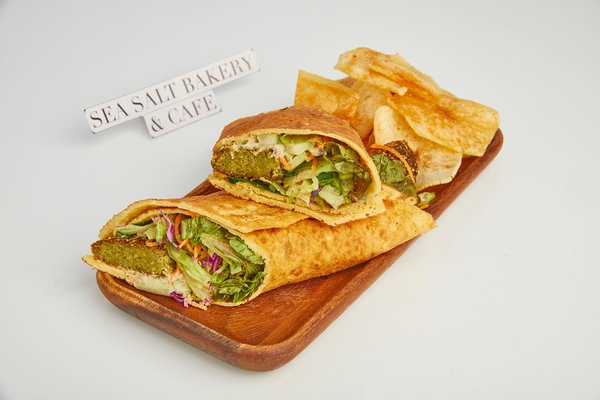 Wrapped in a gluten free & vegan chickpea wrap