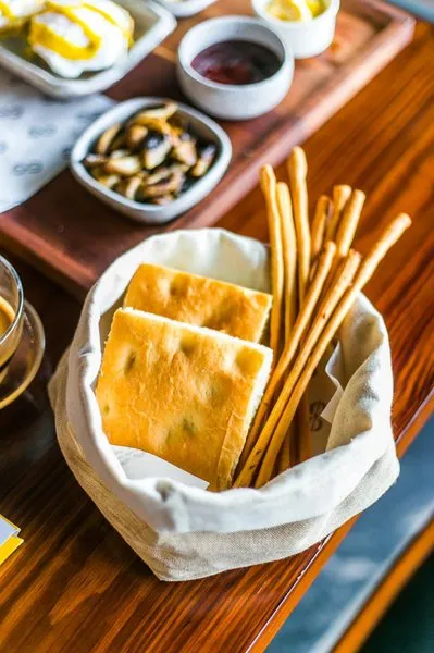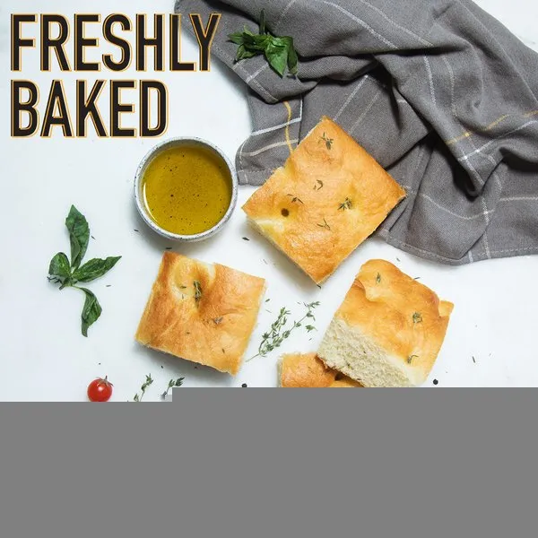 Served with roast potatoes and focaccia bread, served with jam, butter, green salad, American coffee and orange juice