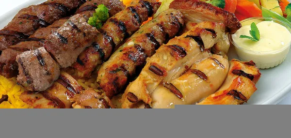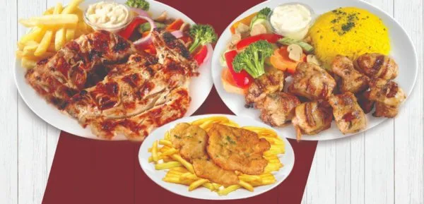 1/4 grilled chicken, shish tawook, chicken and meat kofta, kebab