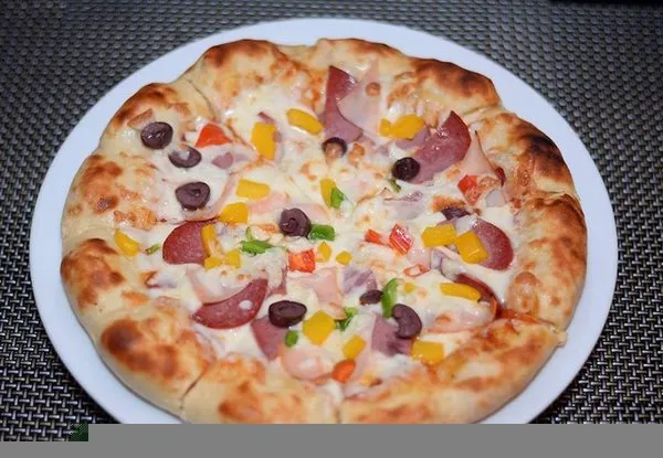 Beef, colored pepper, mushroom, olives, mozzarella, smoked meat and white sauce