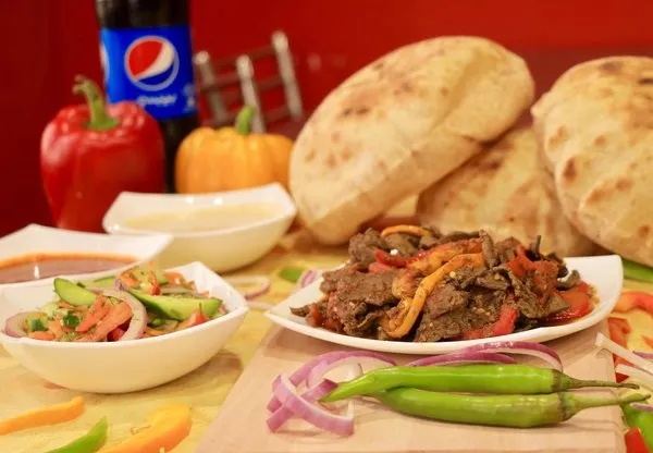 Served with 6 bread, 2 green salad, 2 tahina, liver salad and pickles