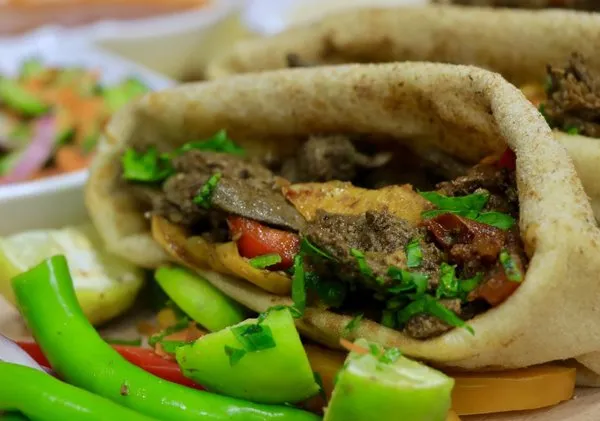 Served with 4 bread, green salad, tahina, liver salad and pickles