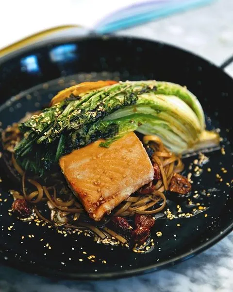 Japanese rice, kale, avocado, marinated scottish salmon, micro greens, black sesame seeds, ginger pickles, topped with spicy mayonnaise sauce