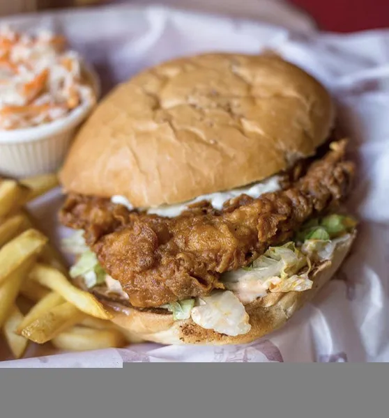 Fried chicken fillet, lettuce,cheese, tomatoes, pickles, BB mayo
