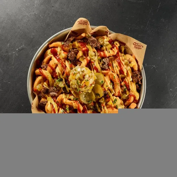 Generous portion of fries topped with chili con carne, cheese sauce, jalapenos, pico de gallo and sour cream