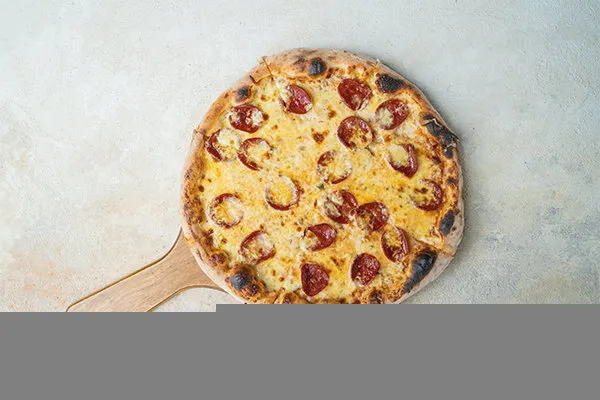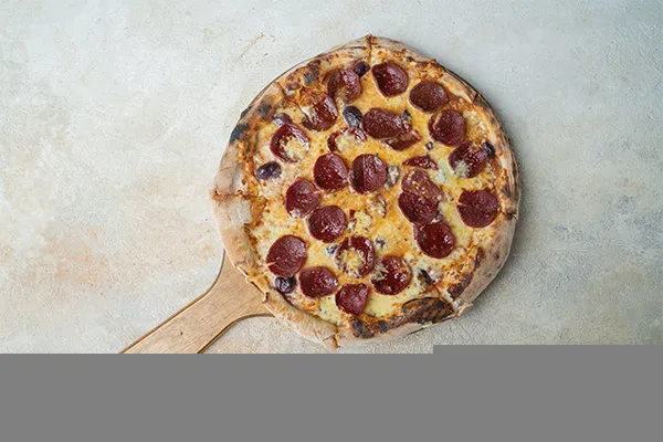 Black olives, red chilli, pepper salami, shredded mozzarella