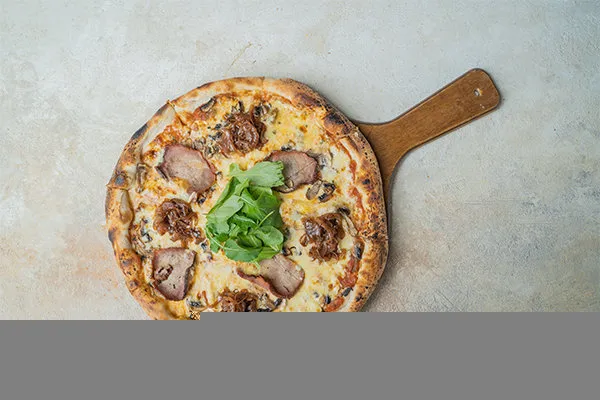Tomato basil sauce, smoked beef, shredded mozzarella, brie cheese, caramelized onion, arugula