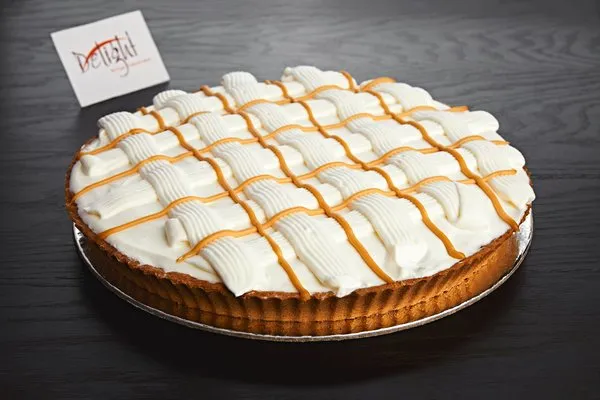 BanoffeeChocolate crust filled with Delight's specialty cream pastry and nutella, banana splits, topped with nutella spread |