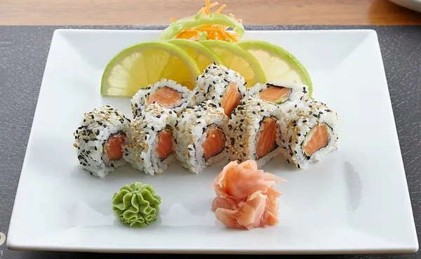 Medium size roll wrapped with sushi rice and seaweed, served with lettuce and black sesame