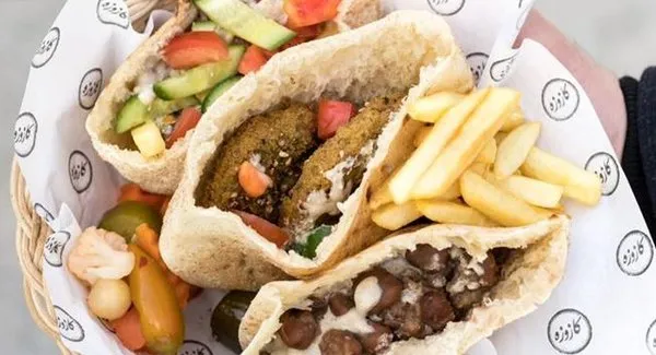 Minced beef, tomatoes, shredded greens, tehina sauce