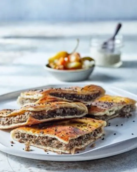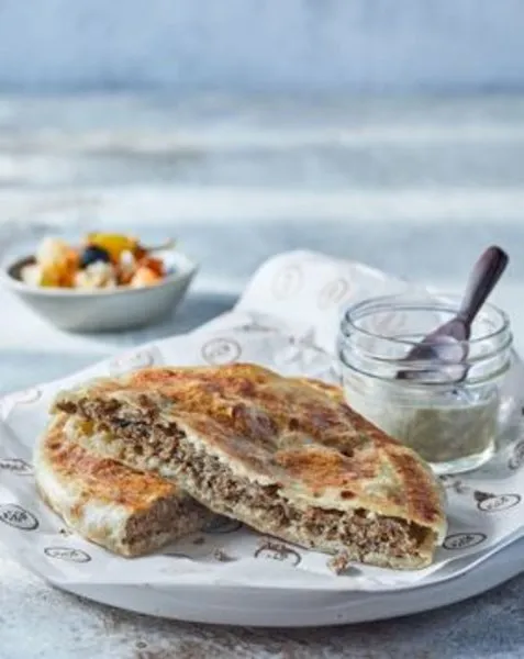 Spicy minced beef baked in a whole crispy baladi bread